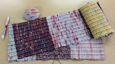 卓上機での裂き織り、織り上がりました。ふんわり柔らかい風合いで、色合いも綺麗です。バレッタに仕上がる予定です。工房に関わる方々のアイディアで、新しい製品が色々できてきています。やっぱり、紺屋町番屋に並...