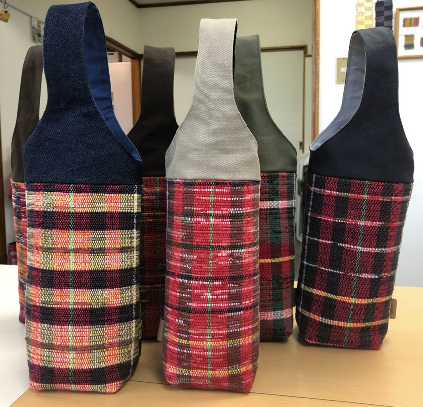 工房のことこの間ブログやインスタでご紹介した裂き織りの布は、ワインバッグになりました。